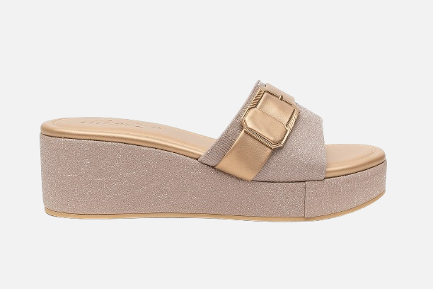 Glamorous Gold Buckle Wedge Slides