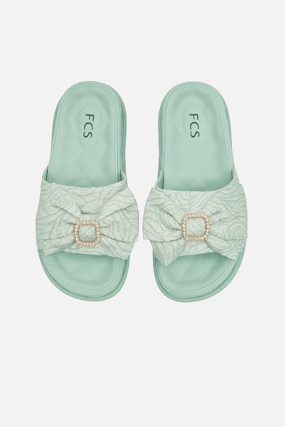 Imported Comfy & Stylish Mint Green Bow Platform Slides
