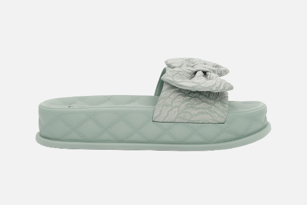 Enjoy effortless style and plush comfort with these charming mint green slides. The eye-catching bow and supportive platform make them your go-to choice for casual outings or relaxing at home.